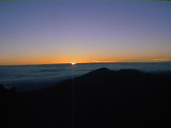 We had 12 bikers in our group plus the lead bike guide and the driver. up and onward on our trip up the 38 miles to the top of the crater, which sits around 10,000 ft . we arove at the crater around 4:15 am and had a continental breakfast with cofee and juice inside the van, while the guide explained to us the rules and safety requirement, and also abou tthe bikes themshemself which are espeacially equipped mountain bikes with front and rear disc brakes(like on a car). at about 4:30 they let us out of the van to walk to the craters edge where we would watch the most beautiful and breathtaken sunrise you will ever see. we stood around with several hudred people at the edge and froze our buns off waiting for it…it was maybe around 40 degrees!!!